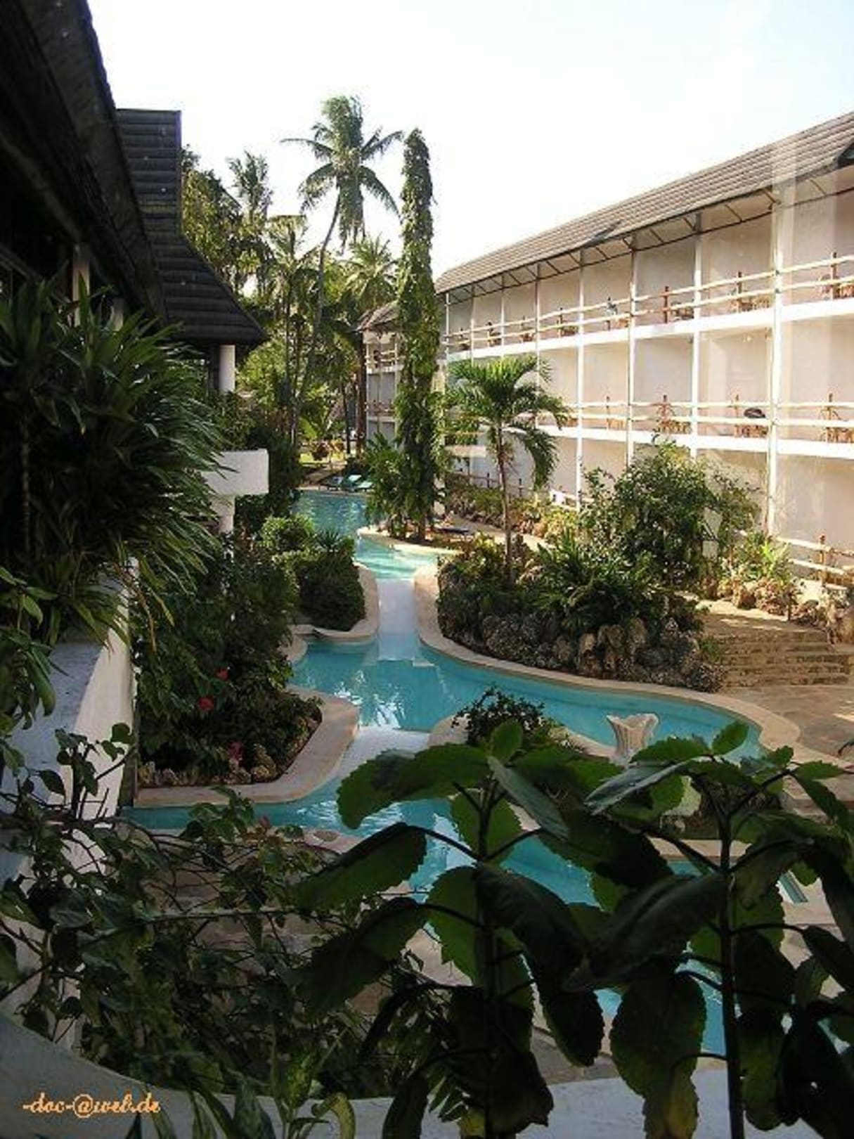 Blick vom Speisesaal auf die Wohneinheiten und den Verbindungskanal