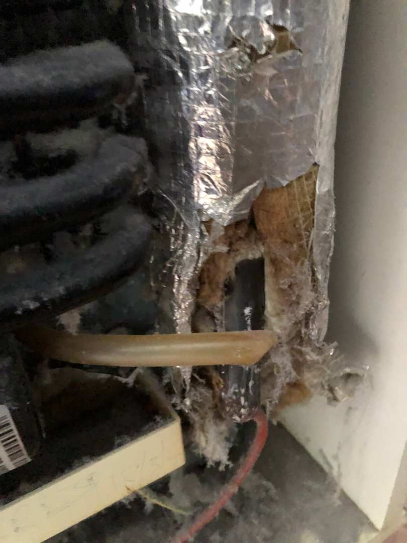 Defekter Kühlschrank vor Reklamation.