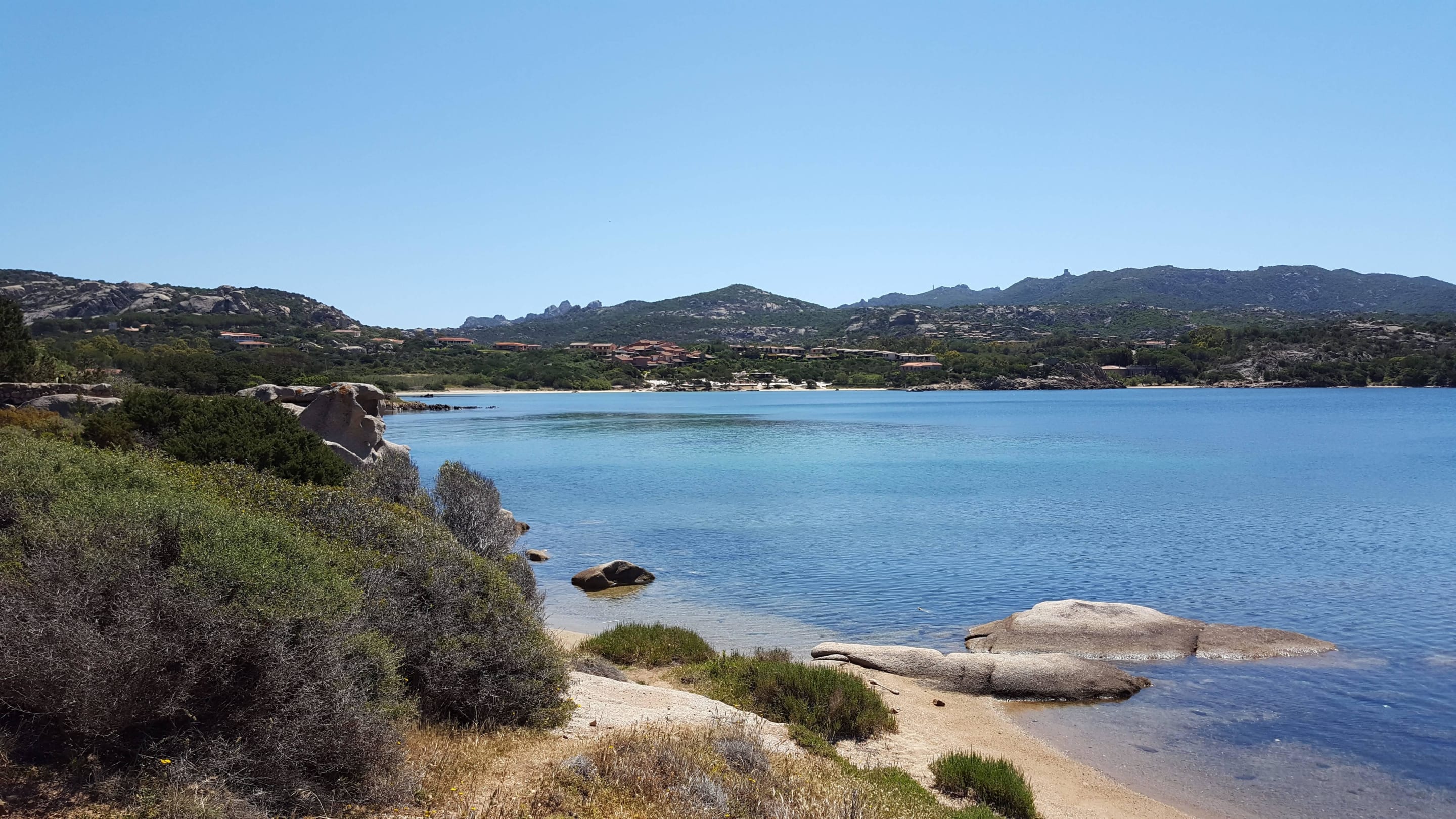Blick über die Bucht zum Hotelstrand