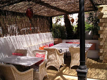 Die Sitzecke ist schön Windgeschützt und gemütlich. Abends mit Tischwindlichtern.