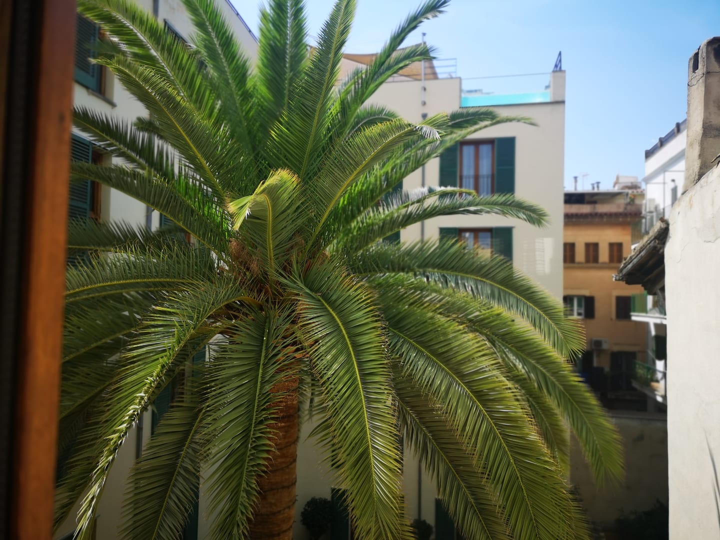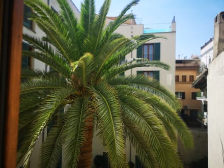 ZimmerAusblick aus unserem Zimmer in der Innenhof mit der riesigen Palme und oben auf den Pool für das hotel