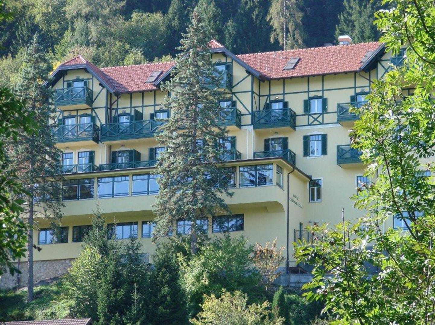 Hotel mit der Balkon-Seite zum See