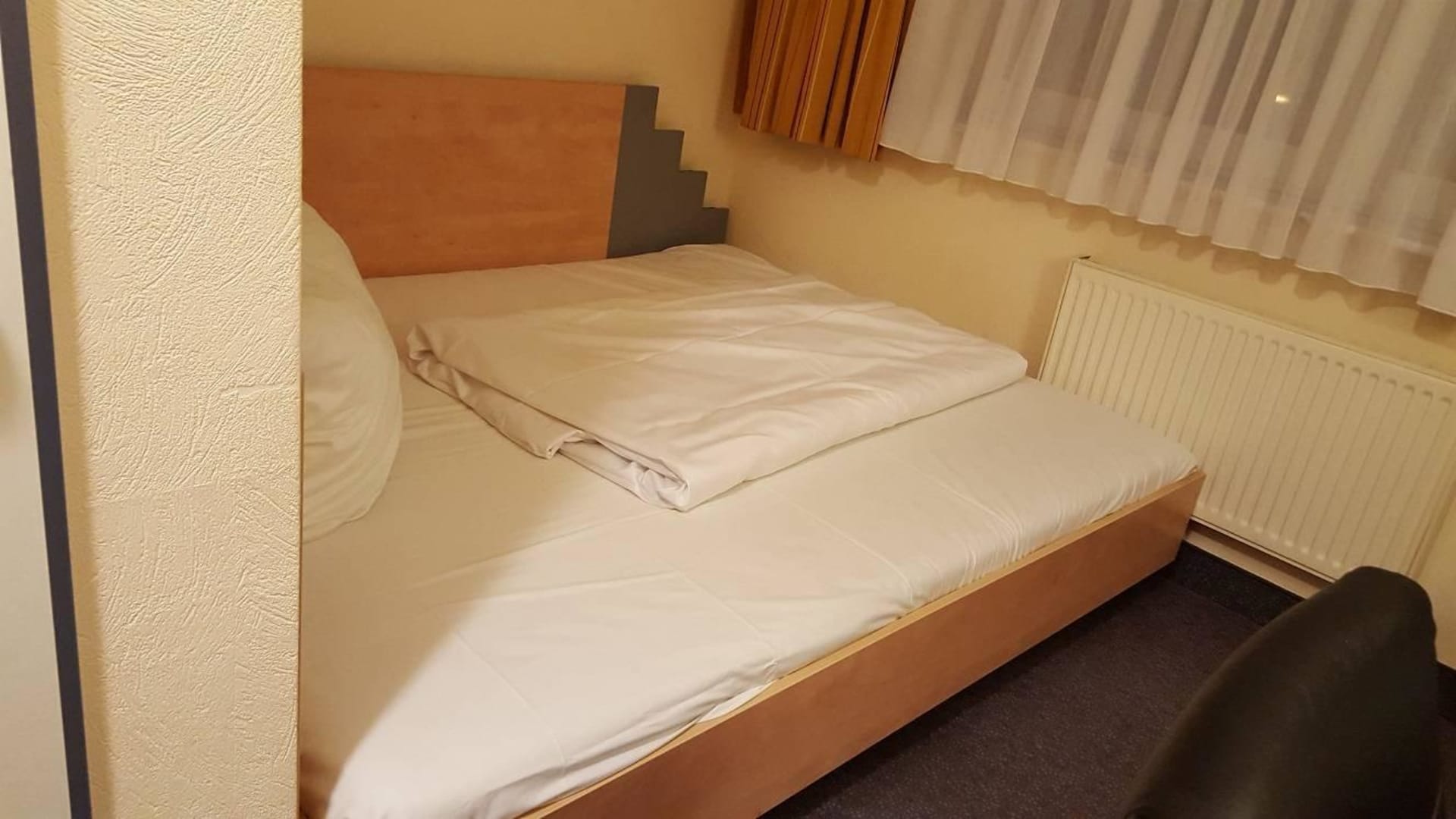 BettIch hatte das Zimmer als Einzelzimmer gebucht, Dafür war das Bett sehr groß. Als Doppelzimmer möchte ich dieses Zimmer aber nicht haben.