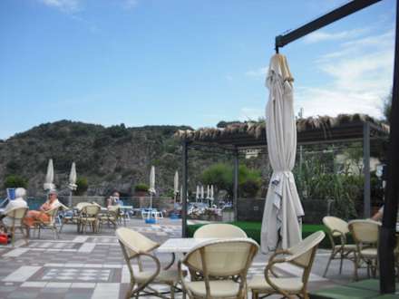 Terrasse zum Sitzen, Liegen und Genießen ... Das Foto ist leider etwas unscharf, dennoch kommt darauf die Großzügigkeit des Außenbereichs zur Geltung