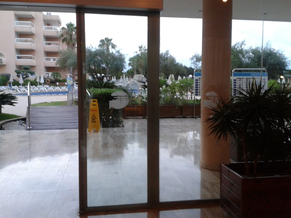 Blick Rcihtung Brücke und Pool (von der Hotellobby