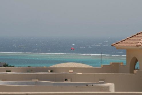 Blick vom Dach auf Strand