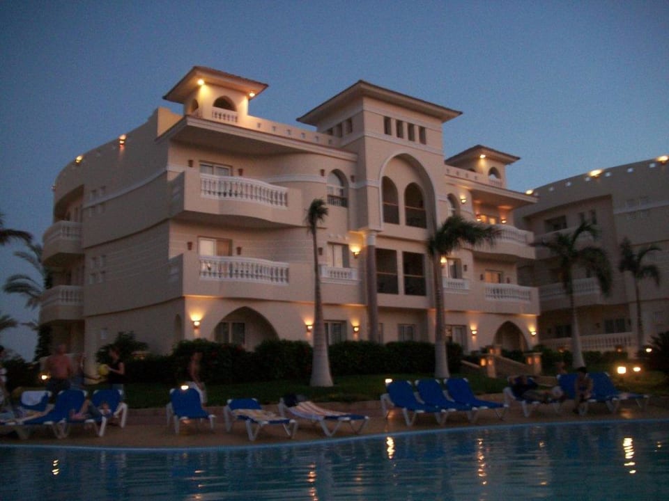 Unser Hotel am Abend von der Poolseite fotografiert