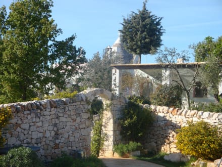 Blick vom Pool zum Trullo