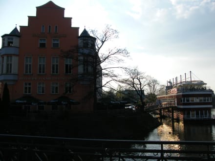Restauracja przy hoteluOdległość między restauracją w hotelu a statkiem to około 20 metrów. Widać wyraźnie wszystko na zdjęciu.