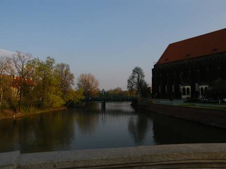 Widok z okna Hotelu Tumskiego.Z okna Hotelu możemy podziwiać most Tumski i Ostrów Tumski. Zaraz obok znajduje kościół św. Piotra i Pawła.