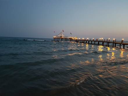 Das Meer am Strandhotel mit Steg.