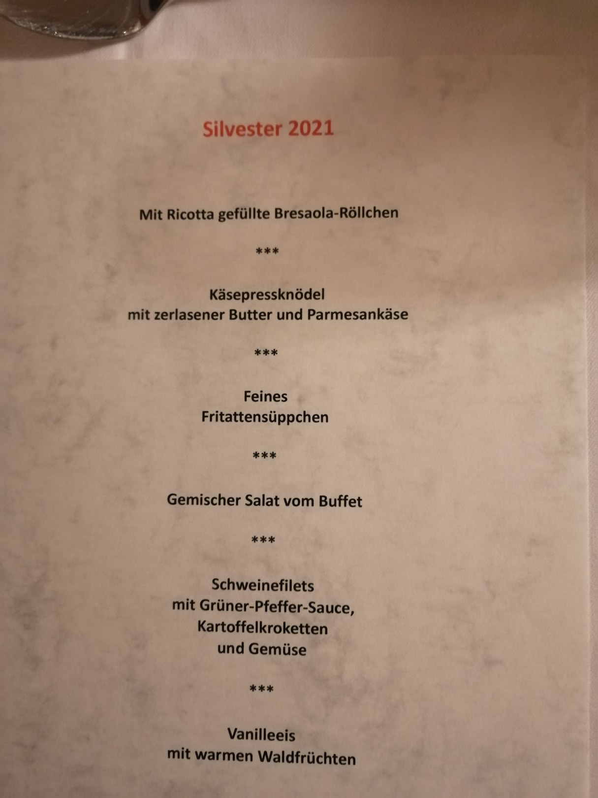 Silvestermenü: Speisekarte.