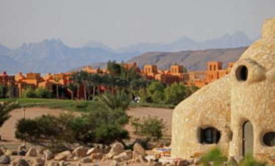 Blick auf die Bergerechts ist ein Teil des Turtle Houses zu sehen.