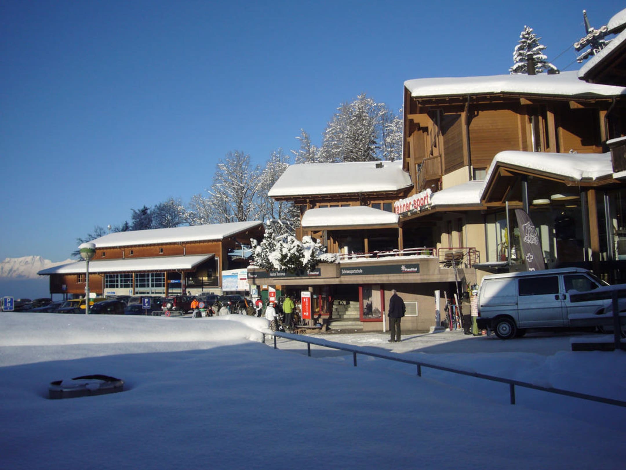 Wie man sieht die Talstation ist direkt gegenüber, ebso Skiverleih. Der Parkplatz ist aber nicht nutzbar entweder im Hotel buchen oder großes Parkhaus gegenüber