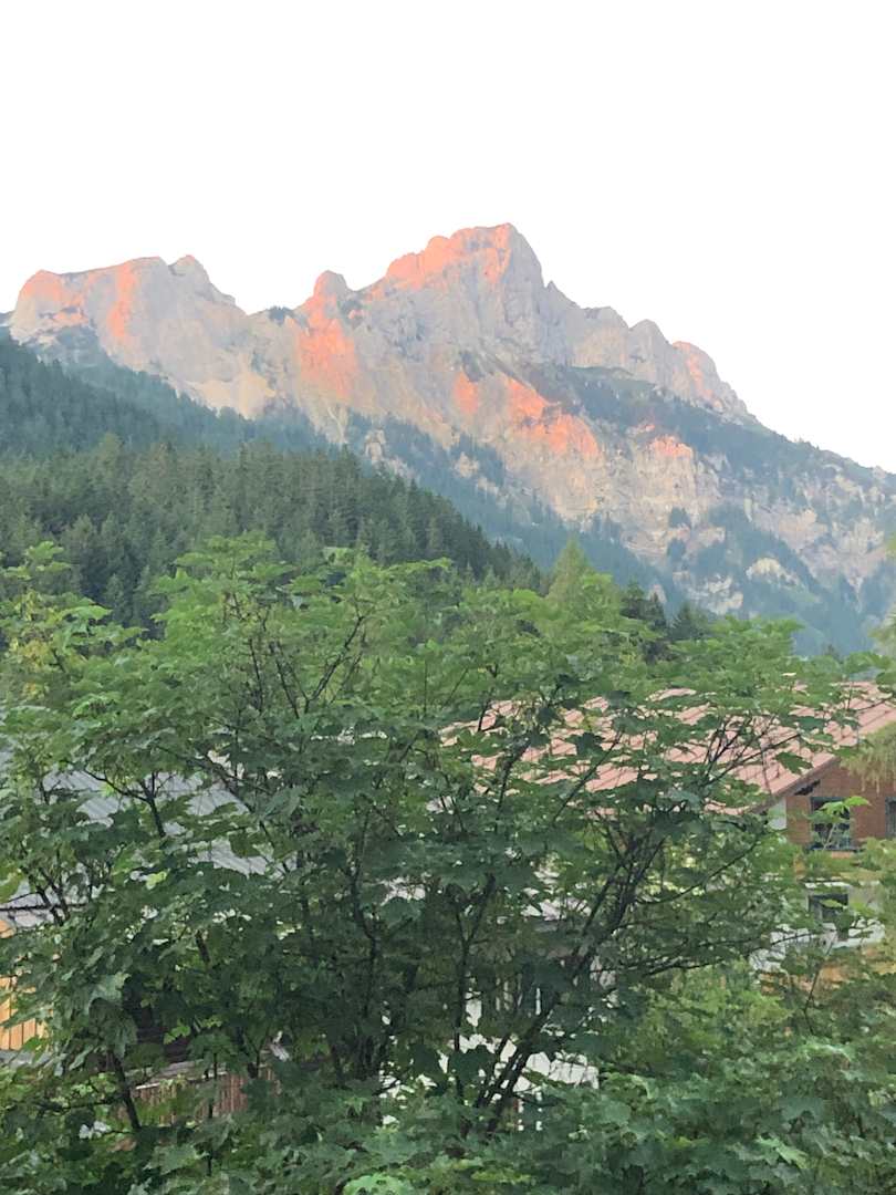 Rothe Flüh am Abend. Ausblick von unserem Balkon.