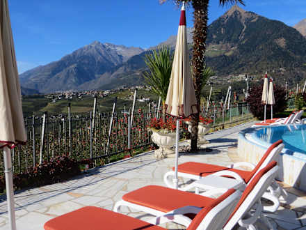 Blick ins Passeiertal vom Außenpoolbereich