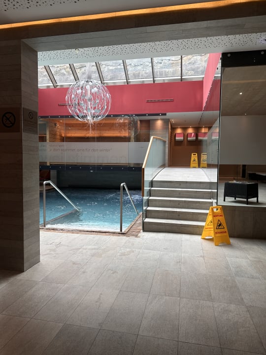 Spa Bereich mit einer Textilsauna und einem Großen Pool sowie Ruhetaum. Es gab noch einen Bereich für Erwachsene mit Textilfreien Sauna‘s sowie Dampfbad und Ruheraum.