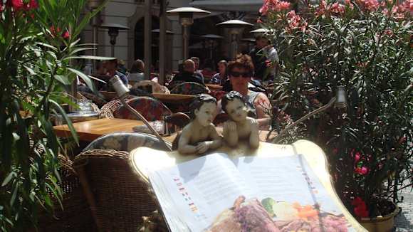 Engel von vorne mit Speisekarte