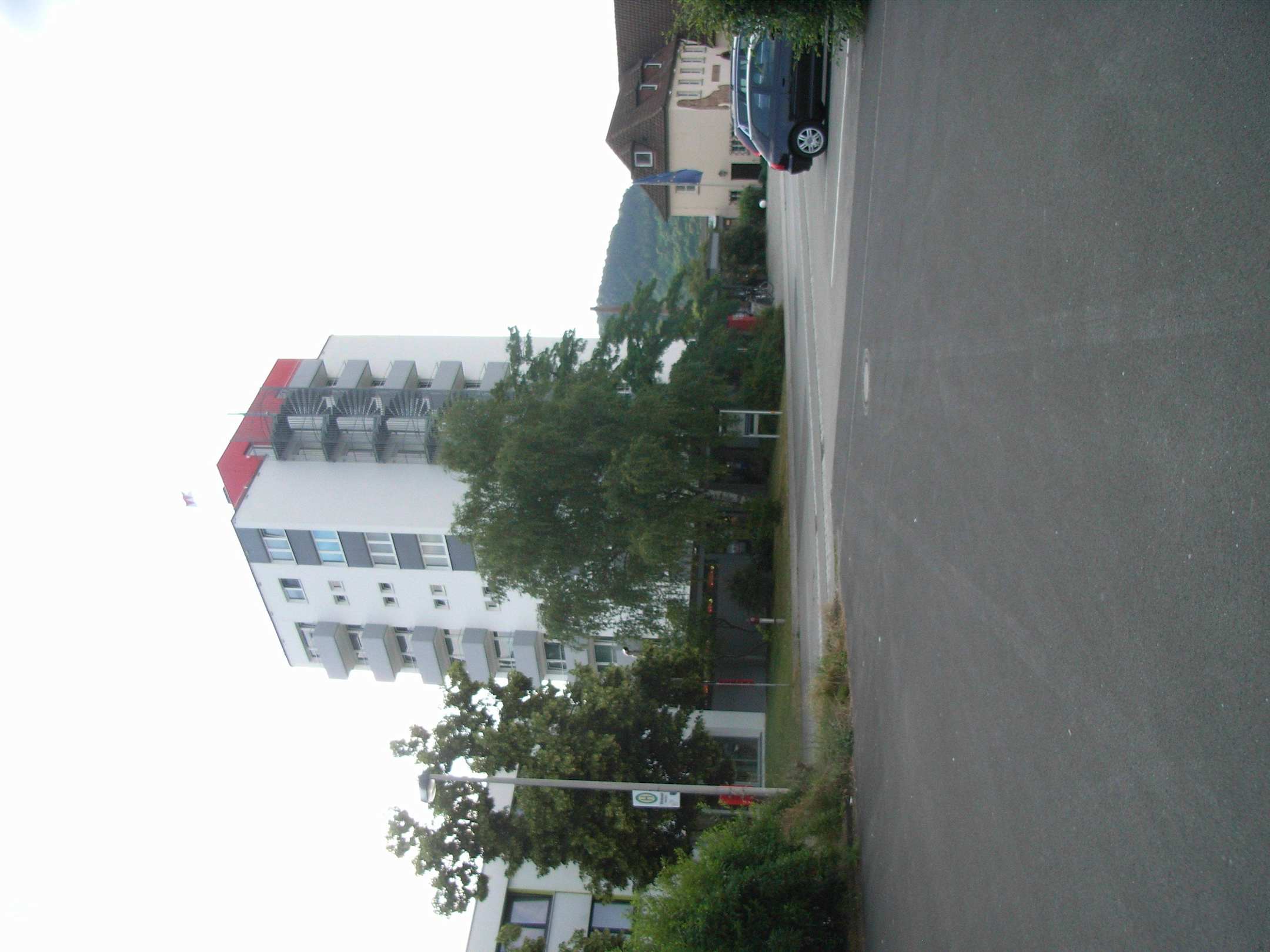 Rechts im Altbau befindet sich das Restaurant, im Hochhaus ein großer Teil der Zimmer.
