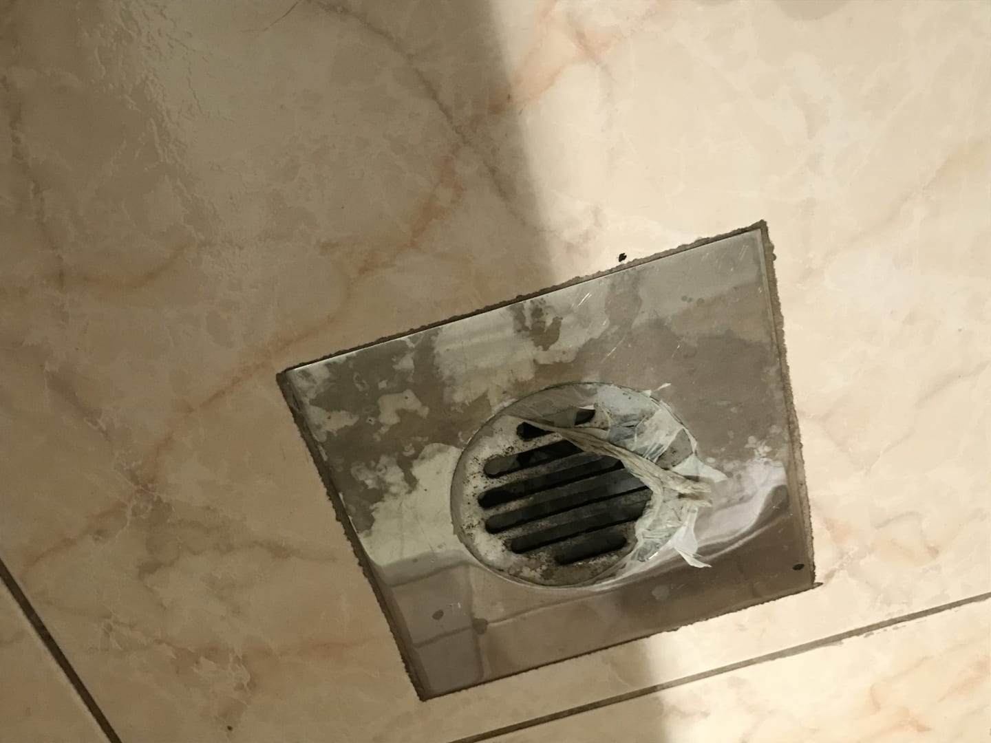 Der Abfluss mitten im Badboden.