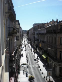 Blick vom Zimmer in die Einkaufsstraße