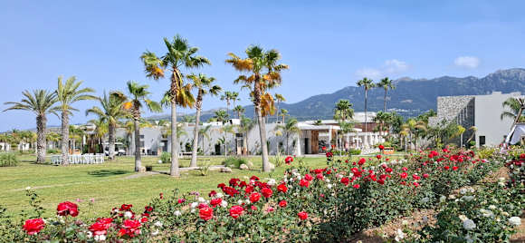 Gartenanlage mit Snackbar im Hintergrund