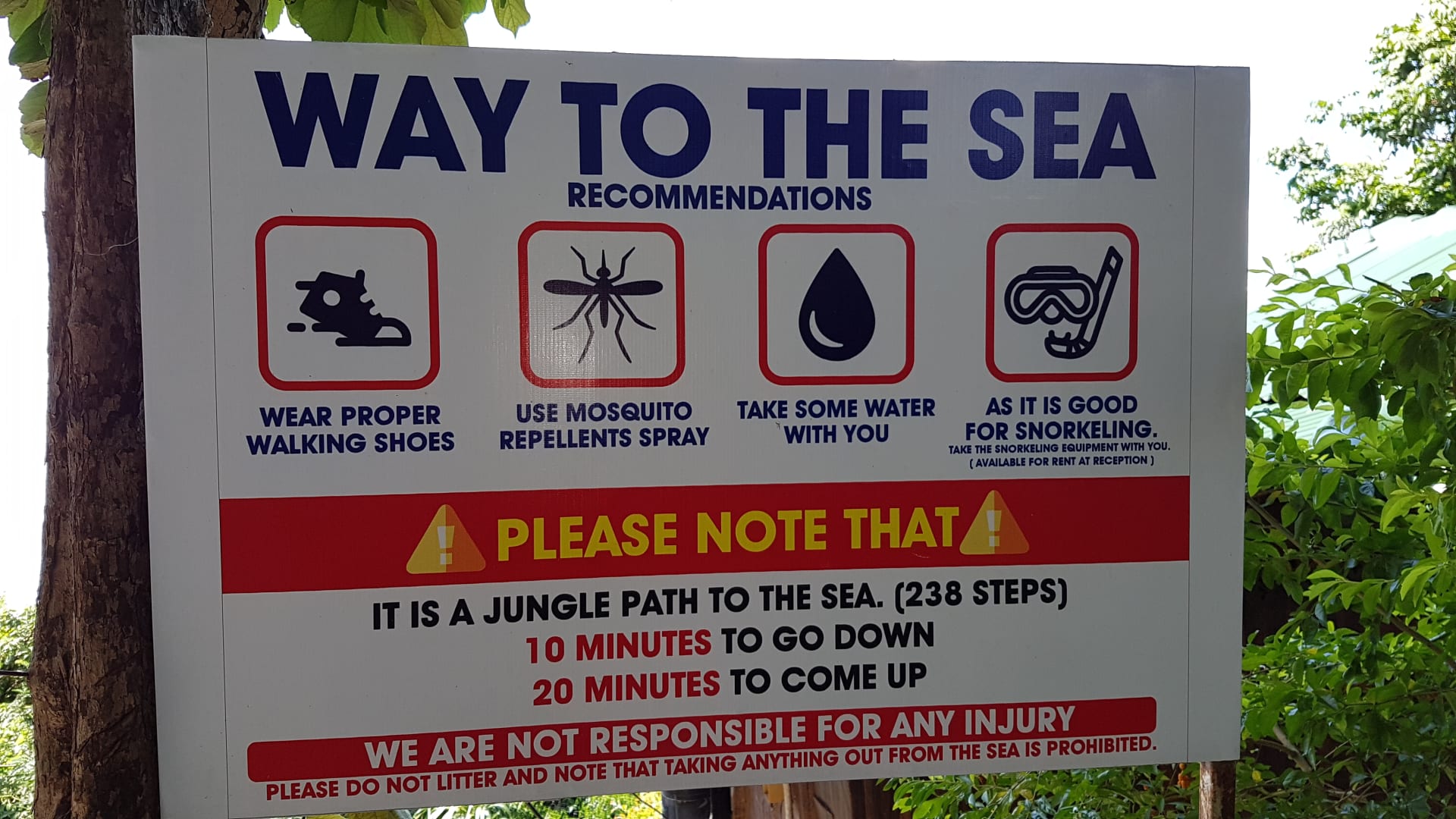 Weg zum Meer über 238 Stufen. Unten findet sich eine schöne Schnorchelmöglichkeit