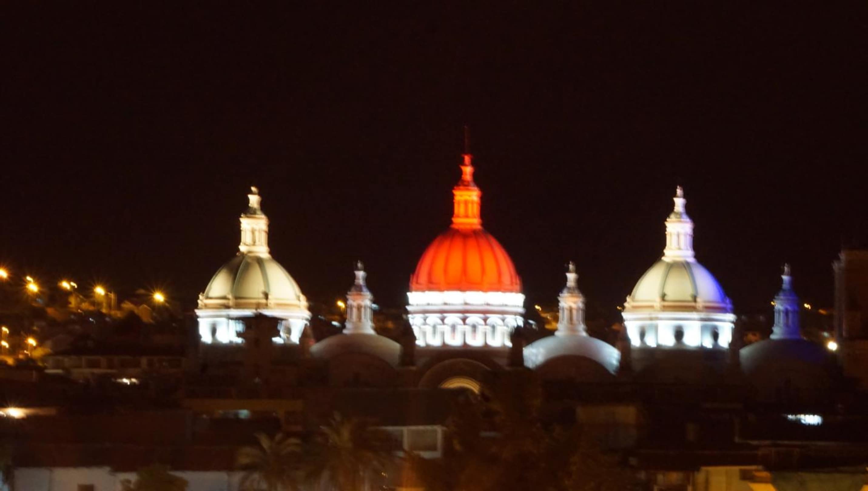 Seitlicher Ausblick vom Balkon auf die beleuchtete Kathedrale von Cuenca