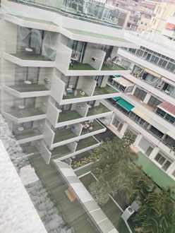 Blick vom Dach runter in die Gartenanlage.
