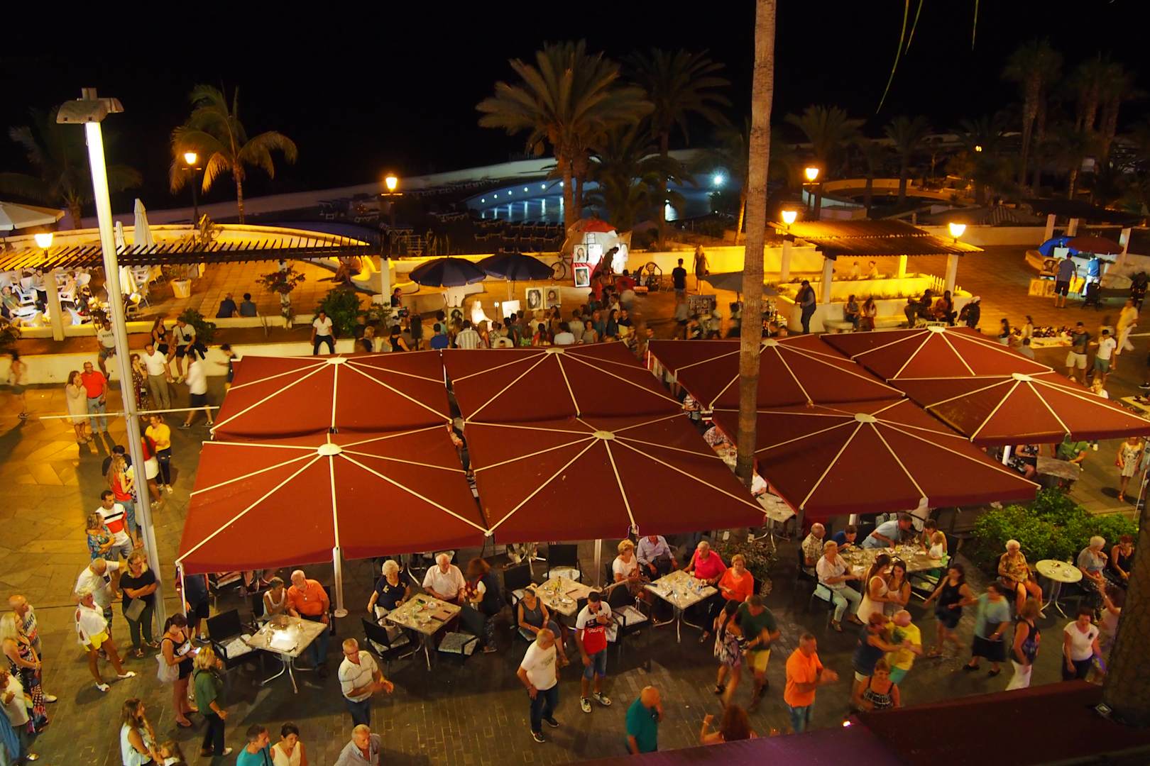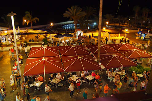 Blick vom Balkon auf die Bar im EG