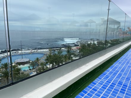 Blick vom Dachpool zum Meerwasserschwimmbad