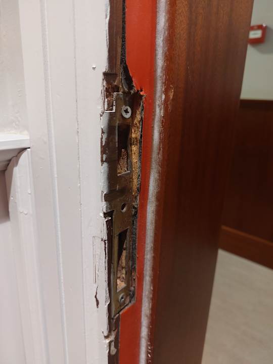 Die Türen sind ziemlich alt und teilweise beschädigt.