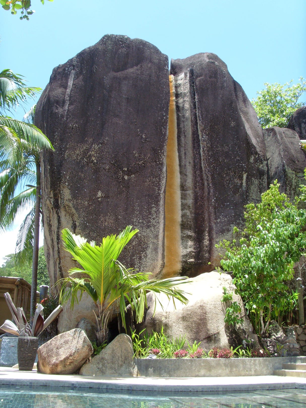 Granitblock am Pool