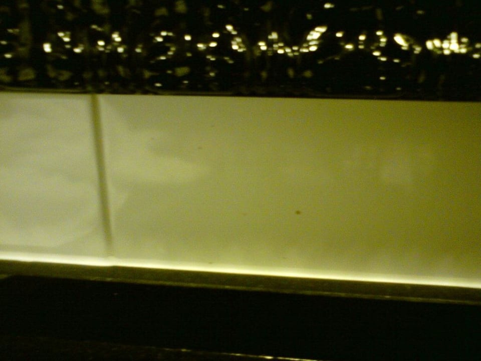 Dreck an den Fliesen unter dem Spiegel