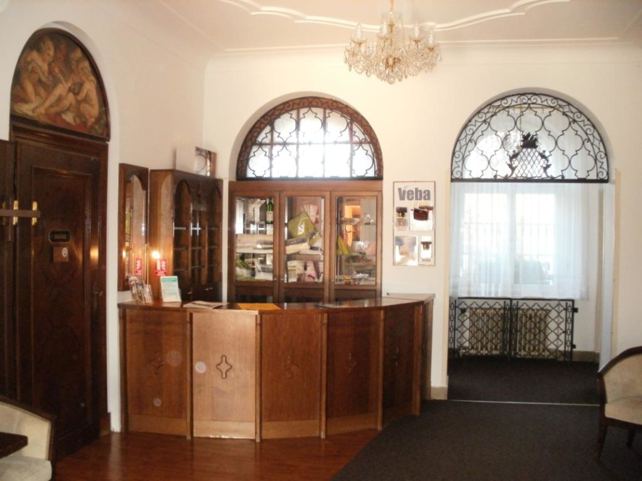 Lobby mit kleinem ShopEinkaufsmöglichkeit von Textilien der Fa. Veba sowie Glasarbeiten der Umgebung.