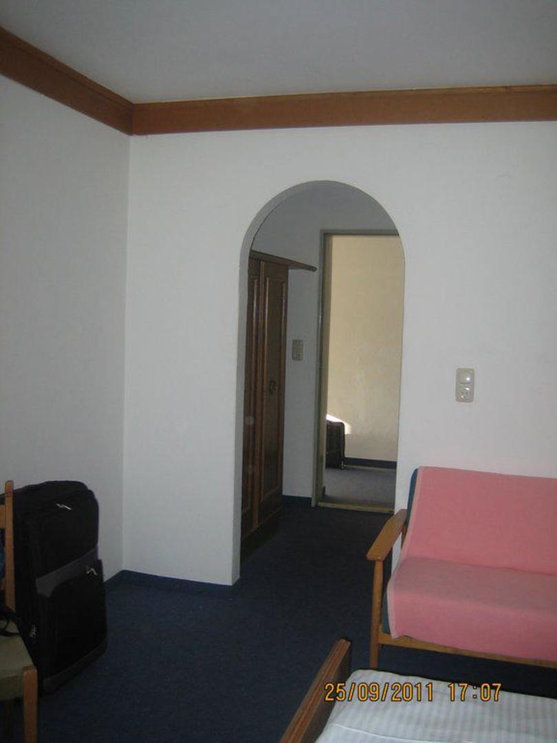 EingangEingangsbereich des Doppelzimmers - rechts Betten und zusätzliches Sofa, links Tisch und Stühle