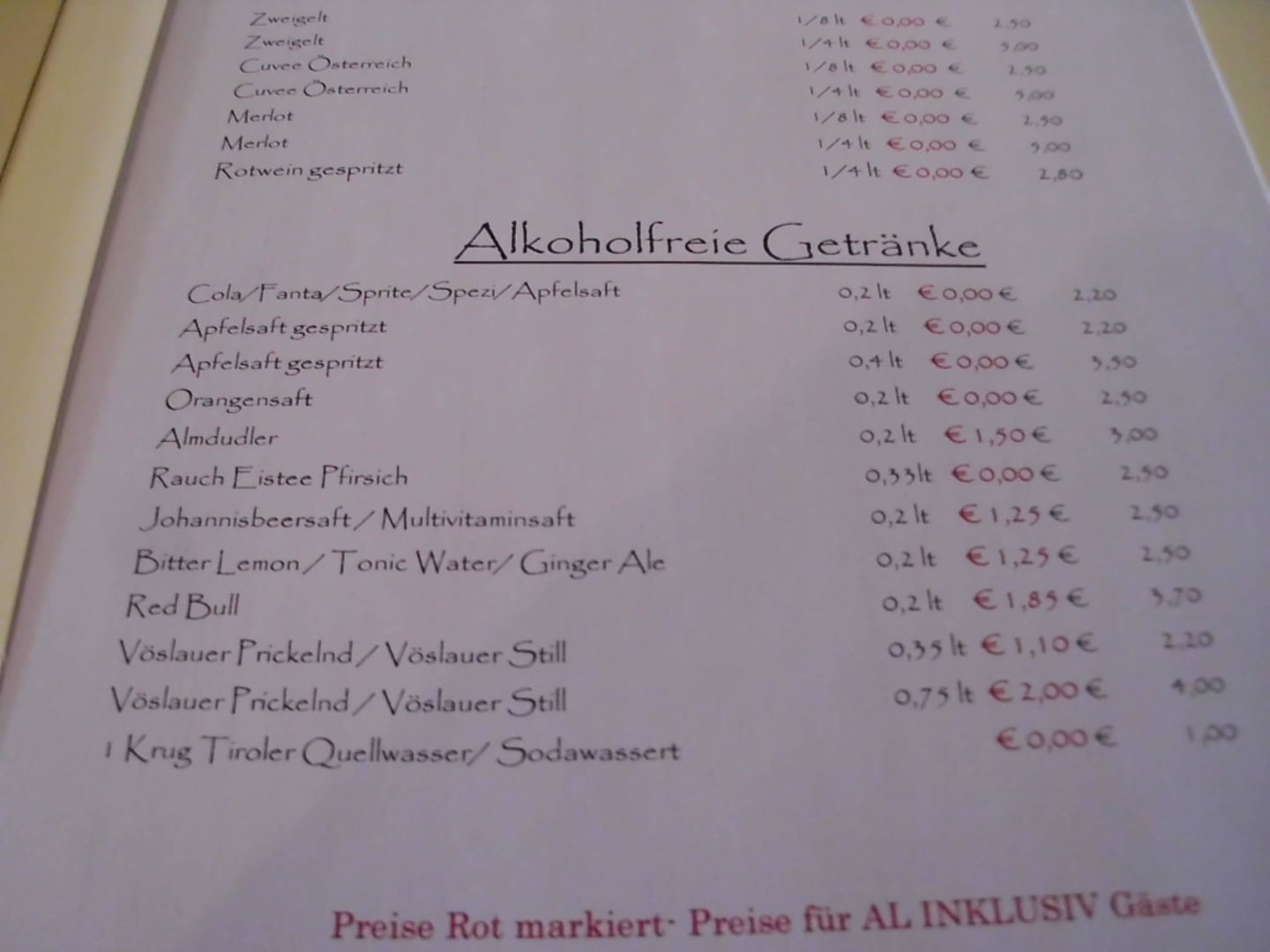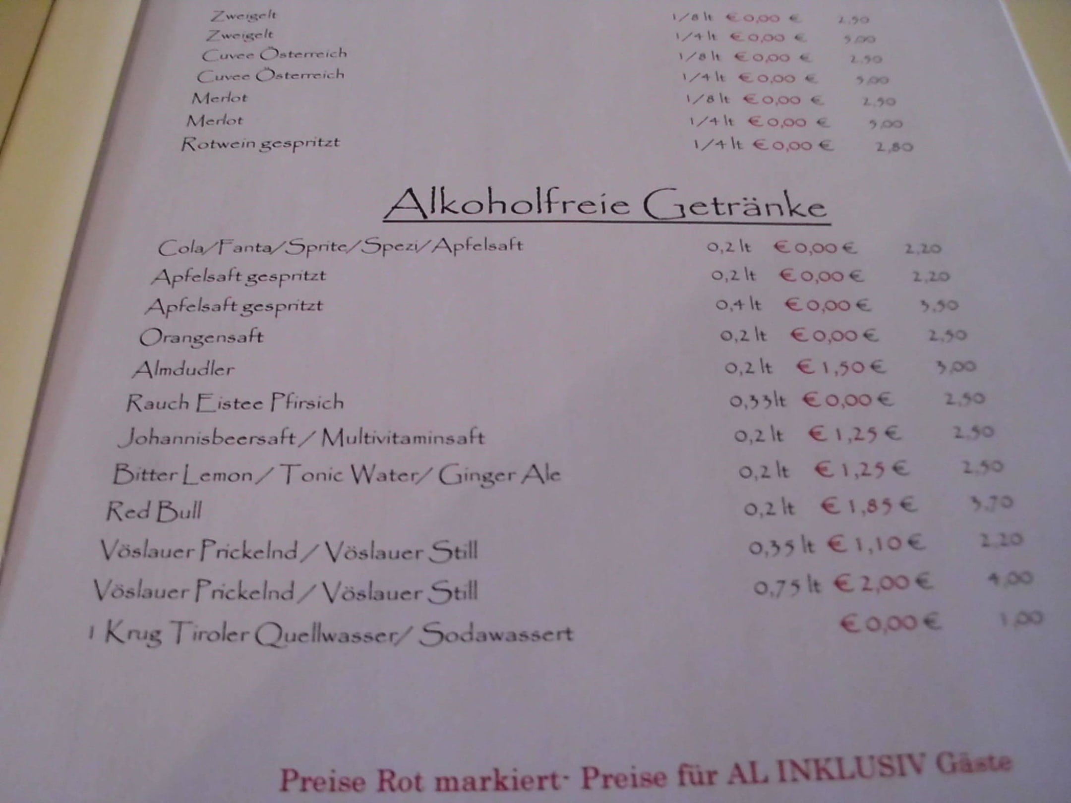 Die Getränkekarte