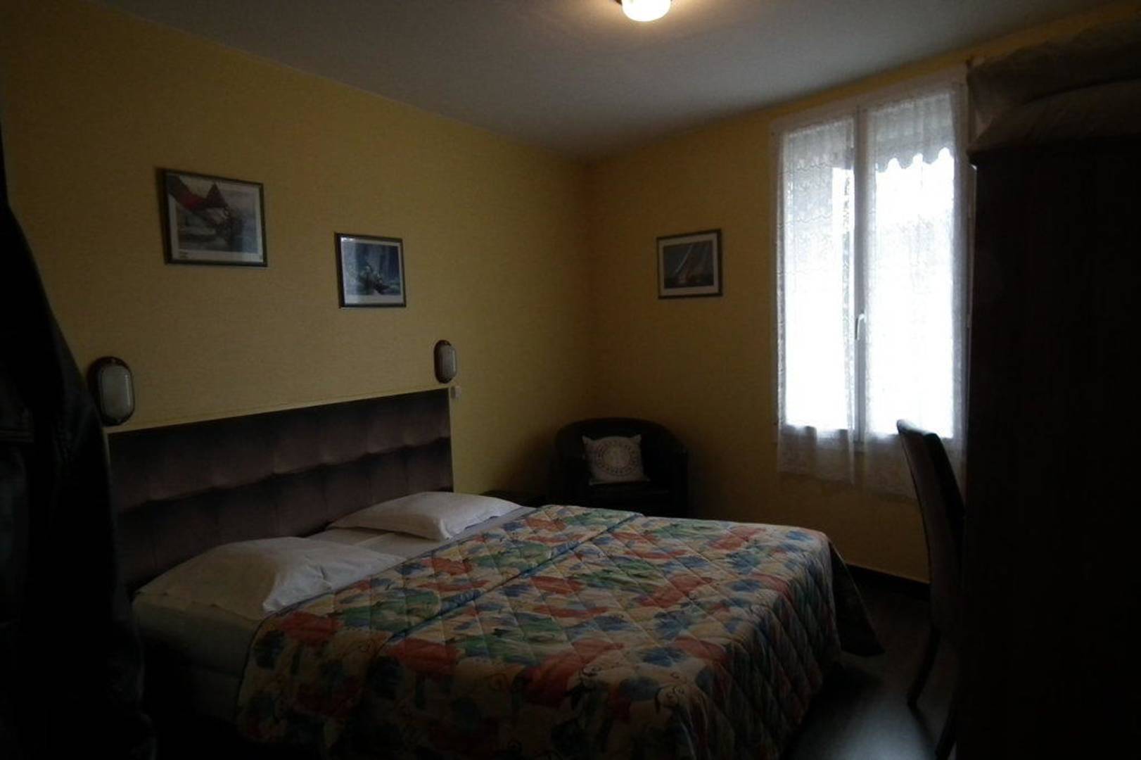 Chambre double standardChambre avec grand lit, TV armoire, chevets