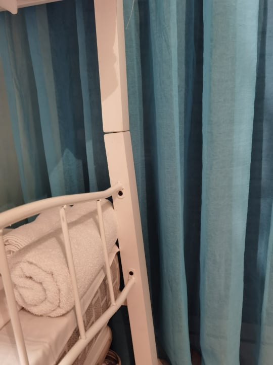 Das Kinderbett beschädigt unstabil ein Fuß schräg
