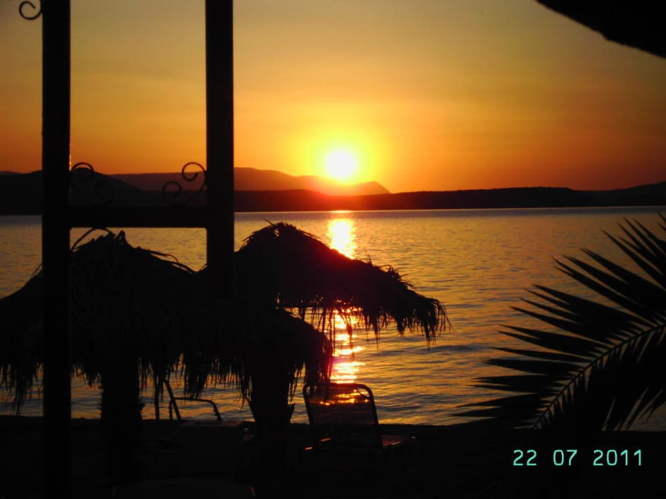 Sonnenuntergang am Strand von Venus Beach, Nea Styra, Euböa