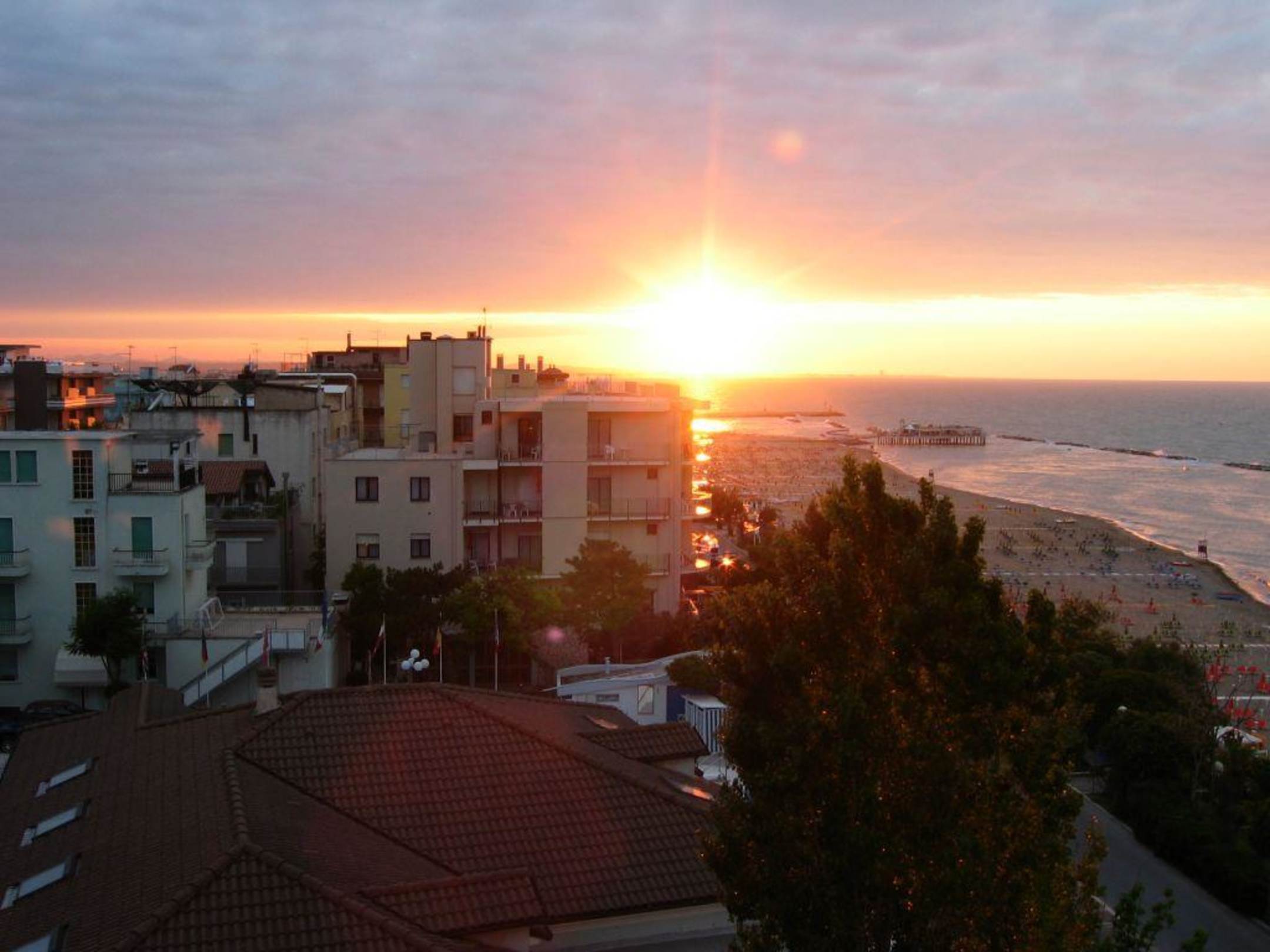 Sonnenuntergang von einem Zimmer in der 3. Etage mit seitlichem Meerblick