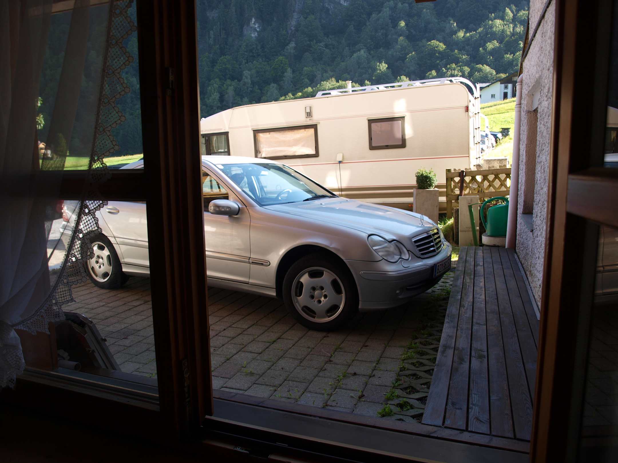 Zimmer N° 5, ungefär 16qm, kleines Fenster, Ausicht auf den Parking