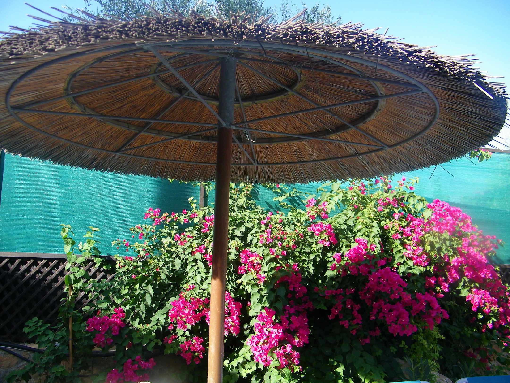 Parasole i kwiaty przy basenie