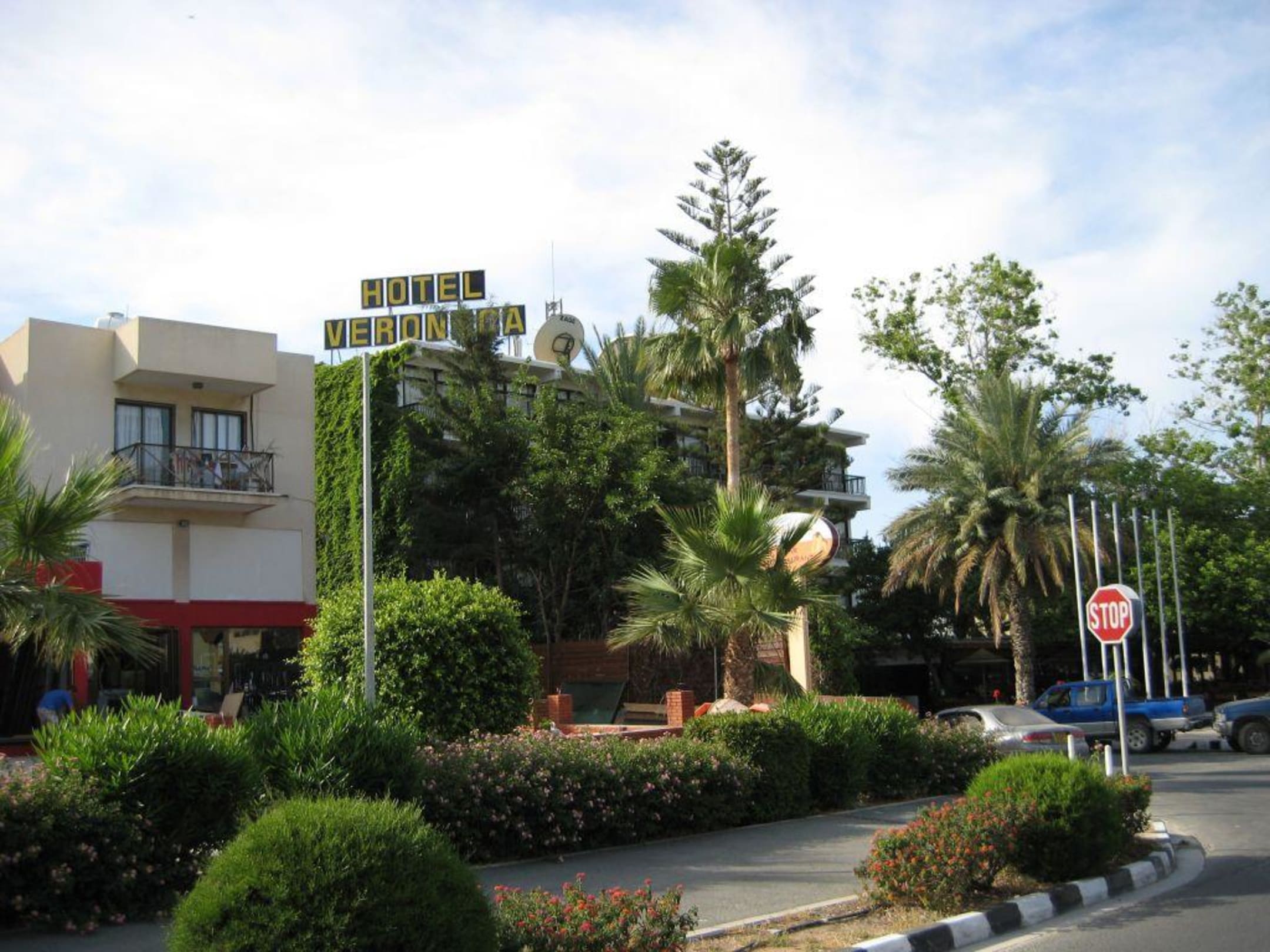 Hotel Veronica in Pafos/Zypern. Ein altes Hotel für Leute, die keine Ansprüche haben. Es liegt direkt an einer Hauptstraße - daher auch bis in die Nacht hinein Straßenlärm.