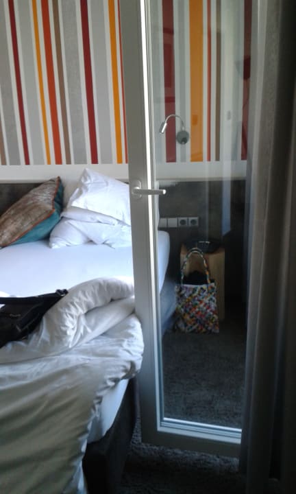Offene Balkontür stösst an das Bett.