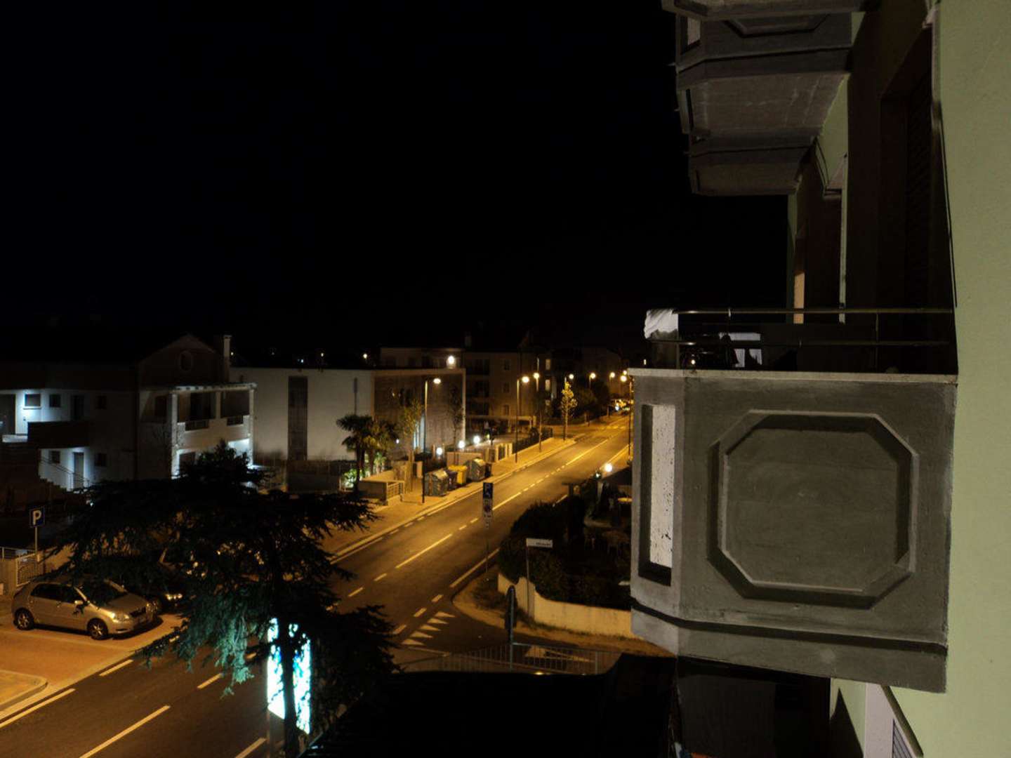 Aussicht von unserem Balkon bei Nacht