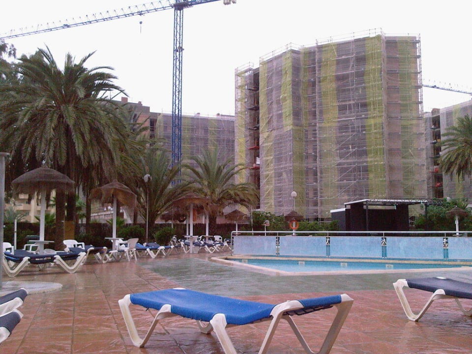 Pool mit Baustelle im Hintergrund