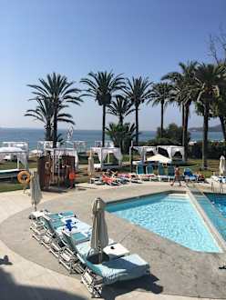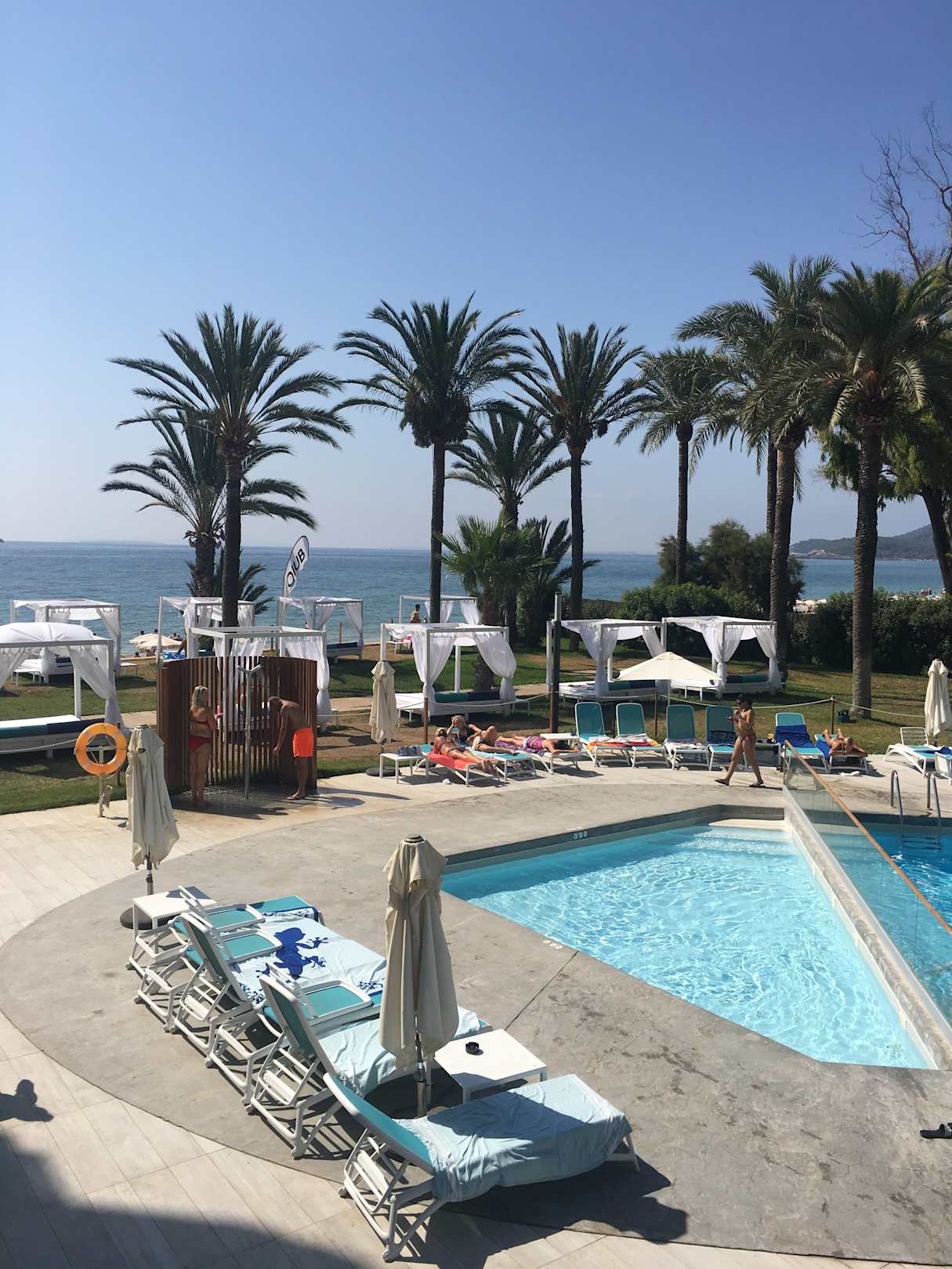 Pool und Strand vom Frühstücksraum aus