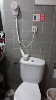 Bad mit Fön überm Klo. Kabel zu kurz