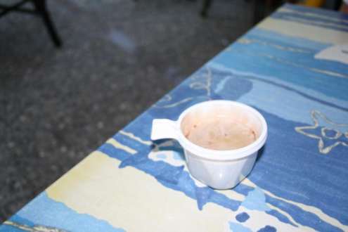 In solch unstabilen Bechern gibt es für die AI-Gäste den Kaffee tagsüber. Die vor Ort Bezahlenden Gäste bekommen schönes Porzellan.